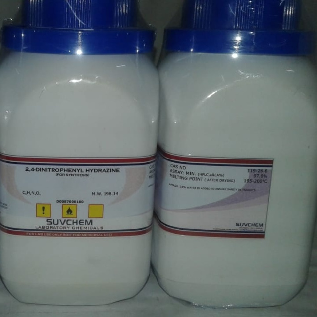 2,4-Динитрофенилгидразин - кристаллы красного цвета, растворим в этилацетате; малорастворим в бензоле, сероуглероде и этаноле; не растворим в воде и в диэтиловом эфире.